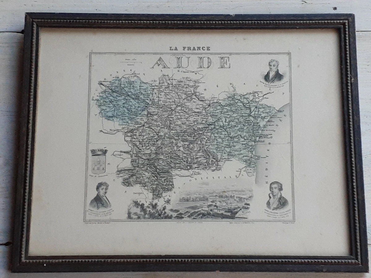 Antique MIGEON Paris LA FRANCE Map AUDE Region CARCASSONNE Colored