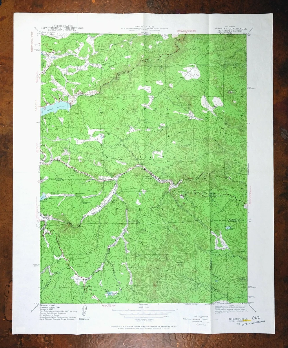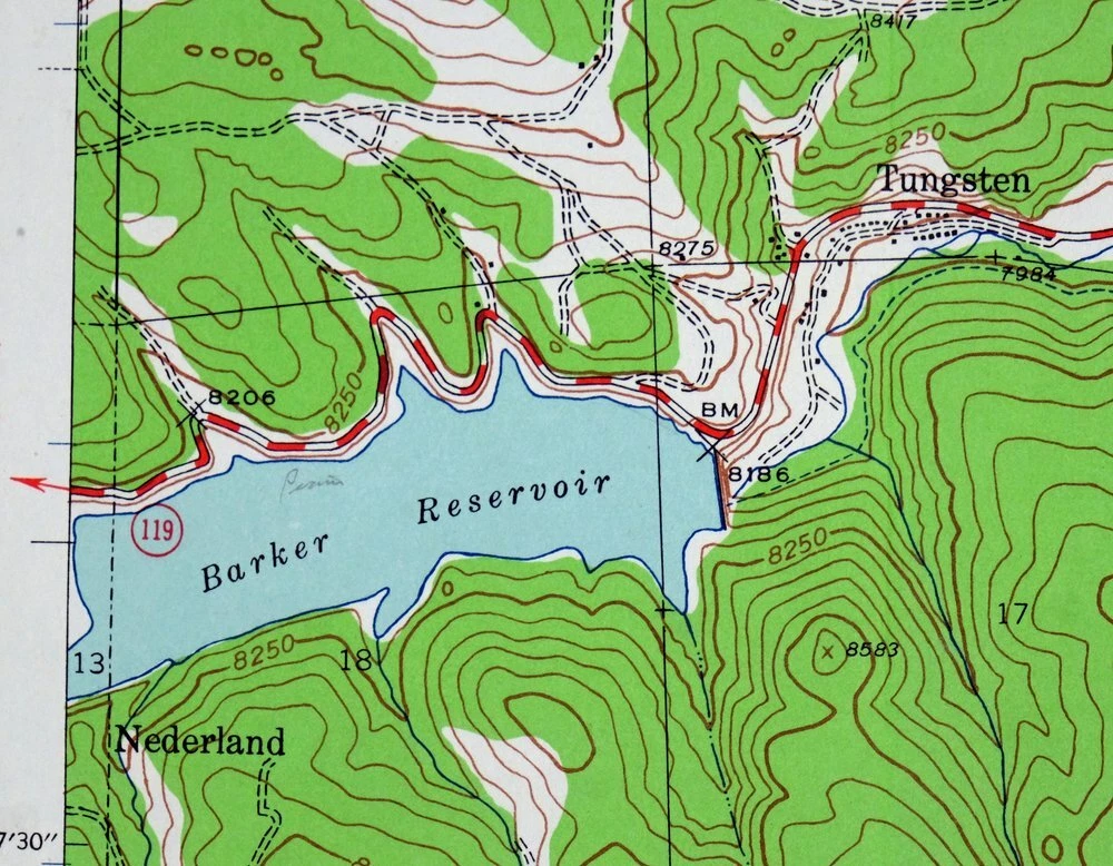 Tungsten Barker Reservoir Pine Cliff Colorado USGS Topo Map 1942