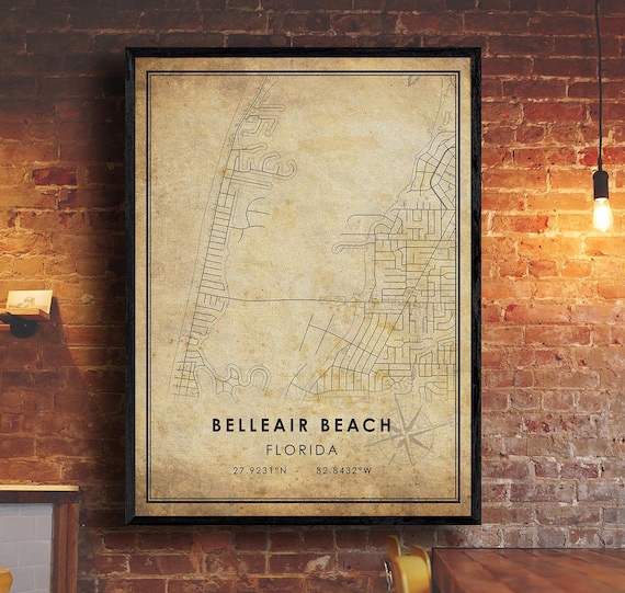 Belleair Beach Vintage Map Print Belleair Beach Map Florida Map