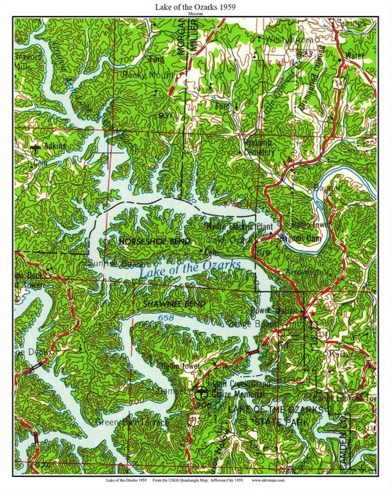 Lake of the Ozarks 1959 Old Map Topo Custom Composite USGS Reprint