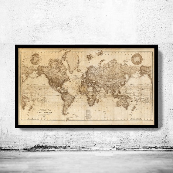 Beautiful World Map Vintage Atlas 1898 Mercator Projection SEPIA