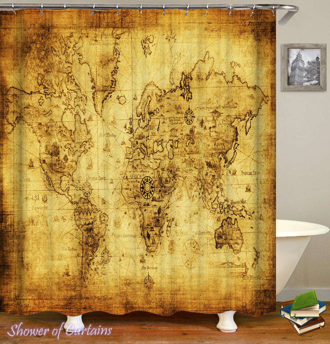 Shower Curtains | Vintage World Map โ Shower of Curtains