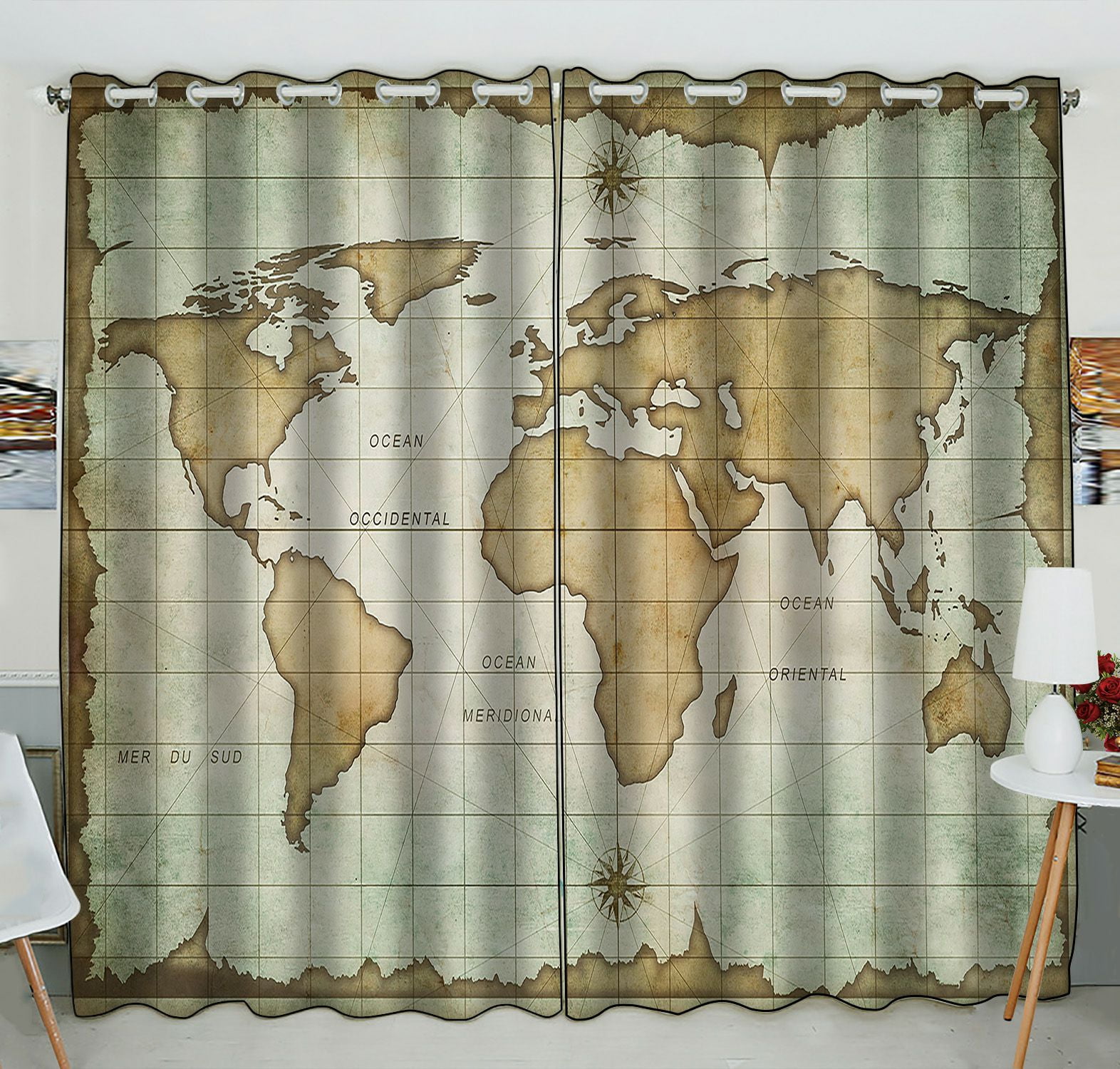 Amazon.com: Jekeno World Map Blackout Curtains World Map Vintage